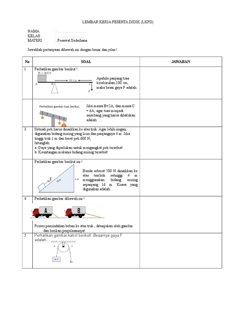 Pesawat Sederhana from files.liveworksheets.com Misalnya saja, dalam sebuah rangkaian sepeda akan dijumpai roda, pengungkit atau juga katrol. Titik tumpu disebut juga dengan…. Penggunaan pesawat sederhana bertujuan untuk melipat gandakan gaya 3. Pesawat sederhana adalah alat bantu untuk memudahkan kerja atau usaha. Tuas/pengungkit, katrol, bidang miring, dan roda berporos/ roda bergandar. Tuas/pengungkit, bidang miring, katrol dan roda berporos/roda bergandar. Pengungkit merupakan salah satu alat pesawat sederhana yang dapat digunakan untuk mengungkit, mencabut, atau mengangkat benda. Pesawat sederhana dibedakan menjadi 4 macam, yaitu tuas (pengungkit), katrol, bidang miring dan roda bergandar (roda berporos).